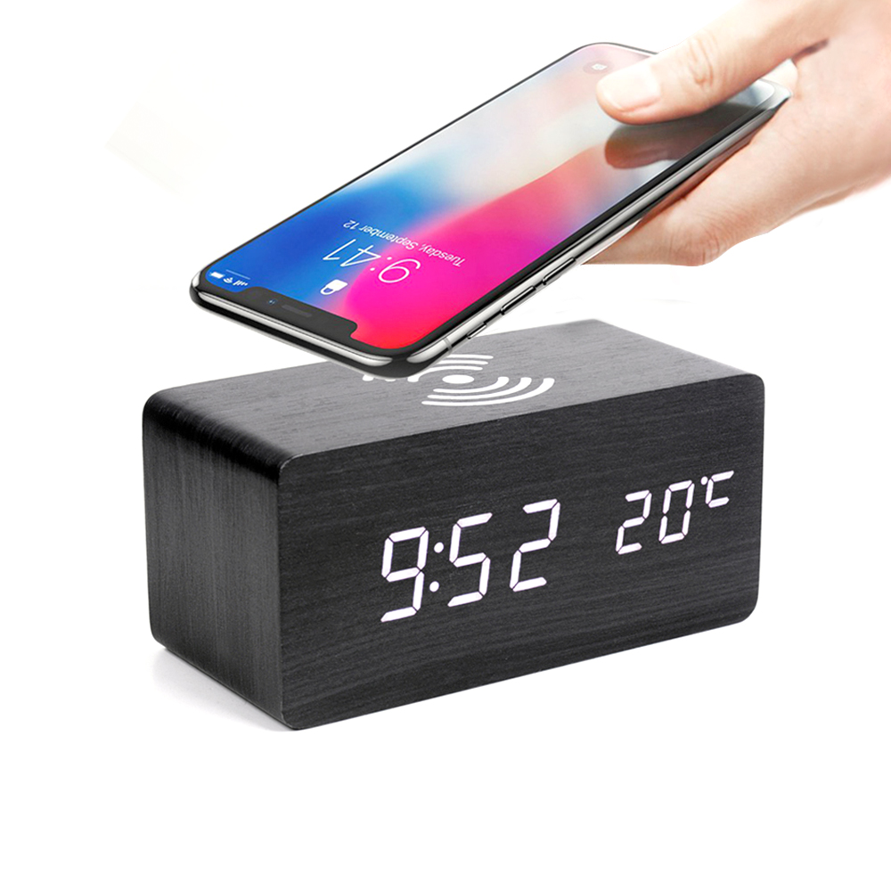 Многофункциональные часы - погодная станция с беспроводной зарядкой, черный