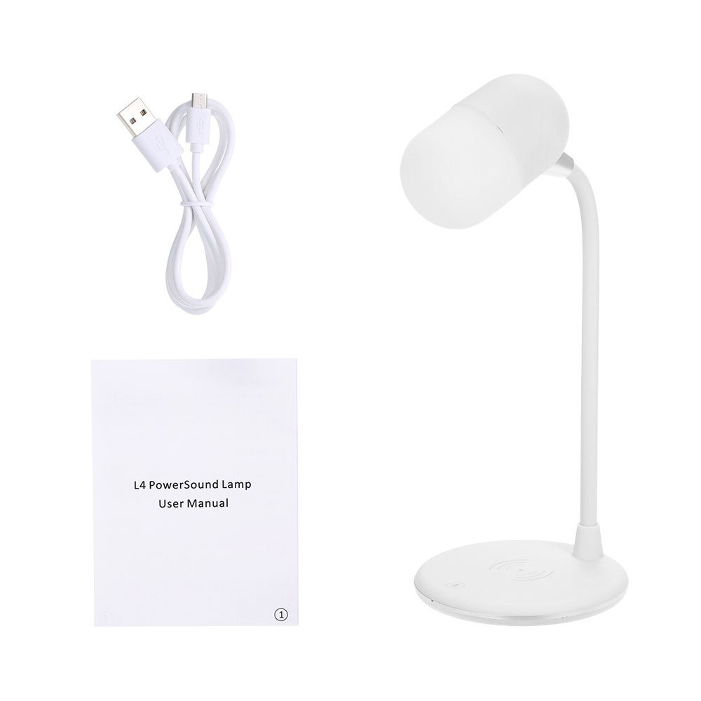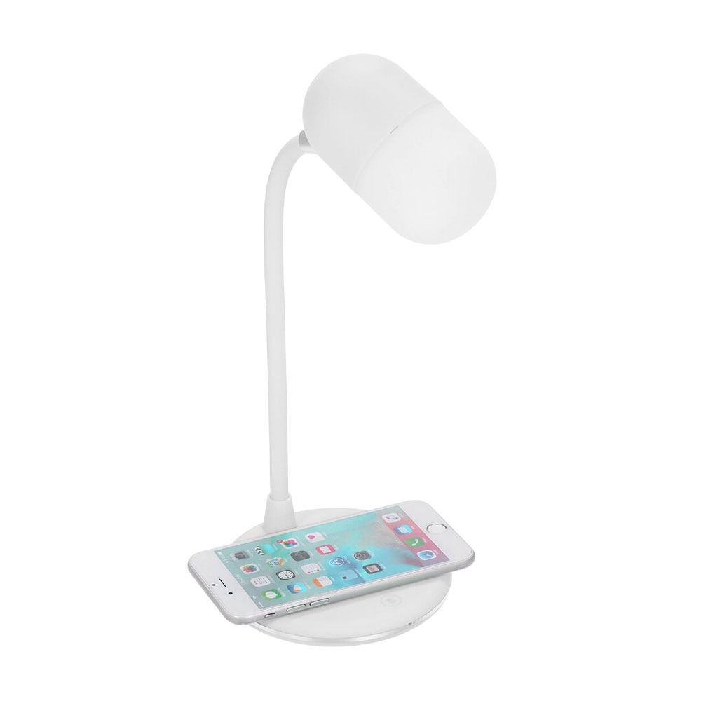 Лампа с колонкой и беспроводной зарядкой Alladin, белый