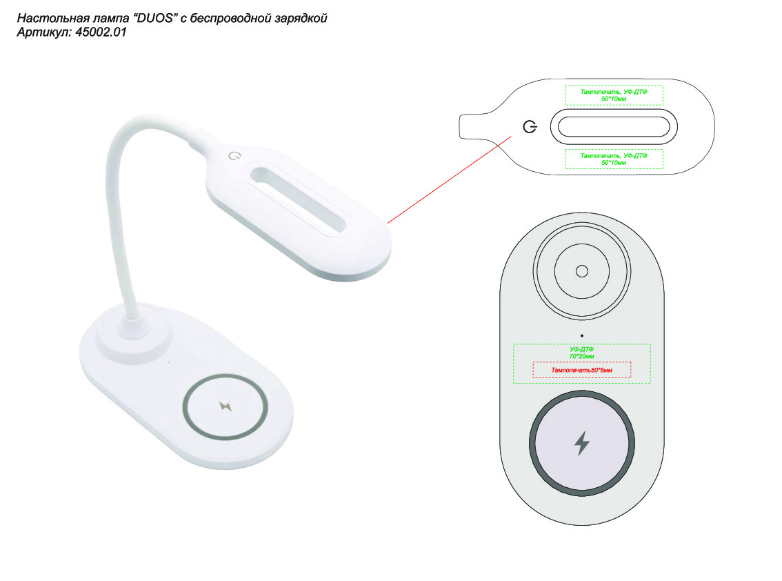 Настольная лампа с беспроводной зарядкой Duos, белый