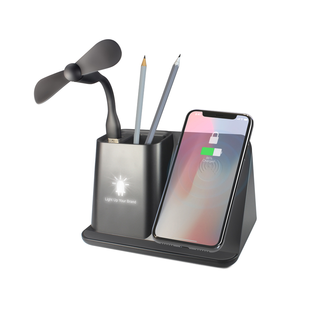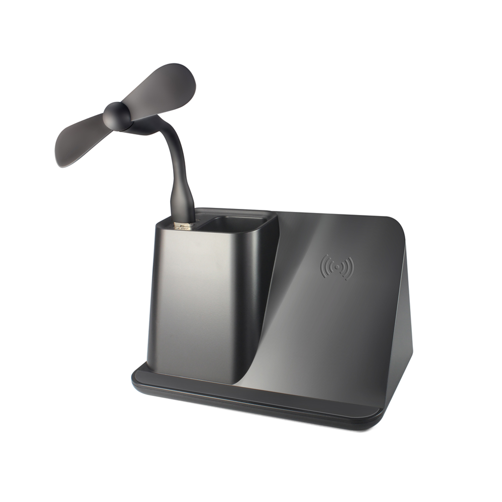 Настольный органайзер Mercury c беспроводной зарядкой и вентилятором, черный
