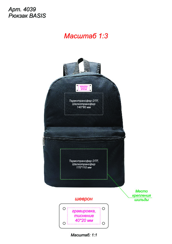 Возможна установка шильды на передний карман и нанесение на неё гравировки / тампопечати