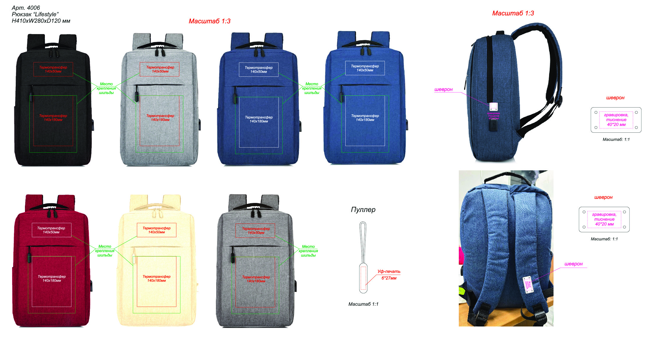 Возможна установка шильды (арт. 4090, 4091, 4092) на передний карман и нанесение на неё гравировки / тампопечати
