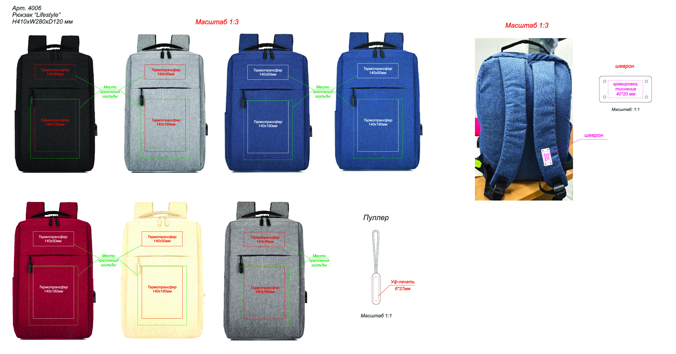 Возможна установка шильды (арт. 4090, 4091, 4092) на передний карман и нанесение на неё гравировки / тампопечати