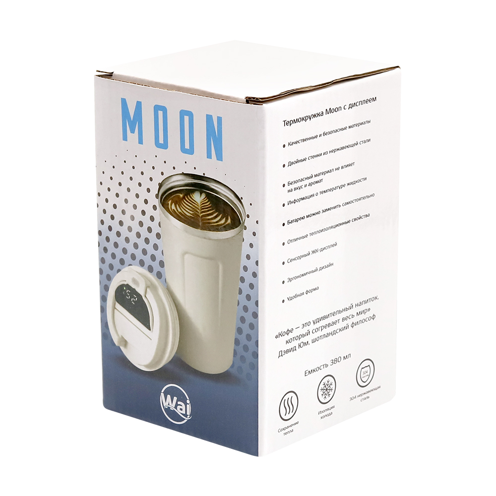 Термокружка Moon с дисплеем, 380мл, белый