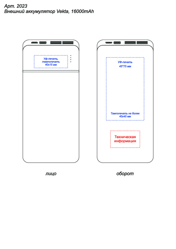 Внешний аккумулятор Vekta, 16000mAh, белый